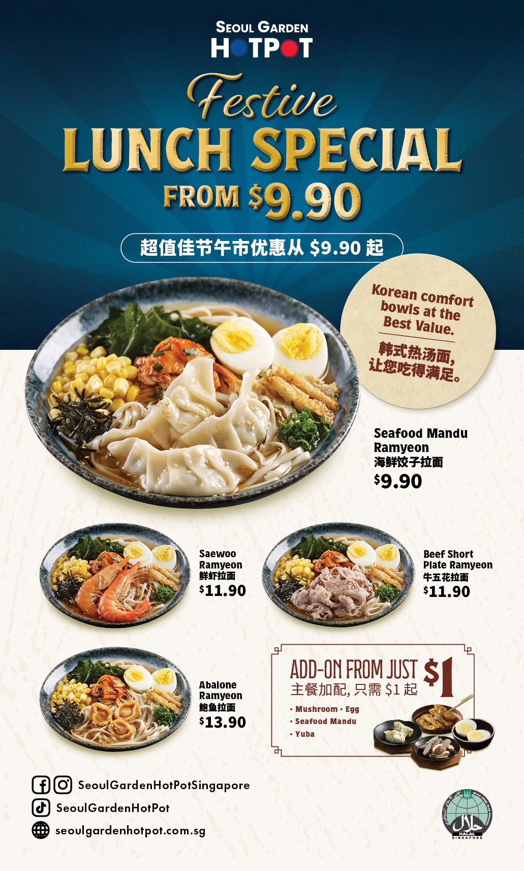 Introduced in 2010, Seoul Garden HOTPOT has always been about personal portions and preferences, offering authentic Korean cuisine served piping-hot and sizzling through to the last drop of flavours. Our Personal Pots of Goodness are carefully crafted to provide generous portions, ensuring a well-balanced diet with every meal.